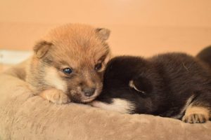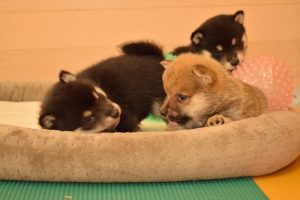 子犬はすくすく成長中です(^^)。 兄妹で仲良く並ぶ姿がとても可愛いです♪