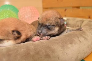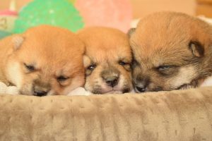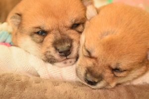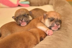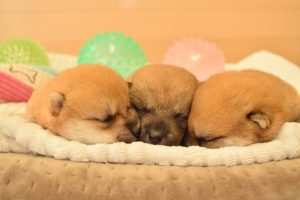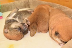 赤ちゃん犬は兄弟でくっついてすやすや眠っています(^^)