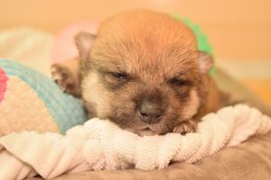赤ちゃん犬はすくすく成長しています(^^)。お目々がパッチリ開いて来ました!