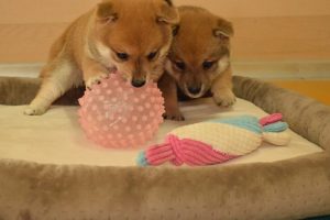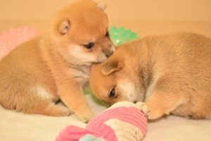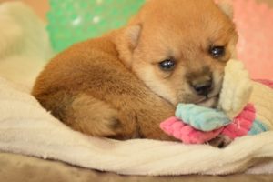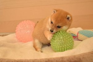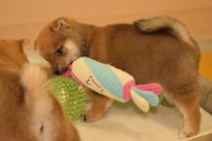 赤ちゃん犬はすくすく成長中です(^^)。おもちゃで遊ぶ姿が可愛いです♪