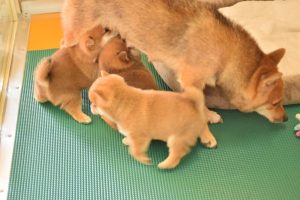 お母さん犬は愛情たっぷりに赤ちゃん犬を育ててくれています。可愛いお母さん犬です(^^)