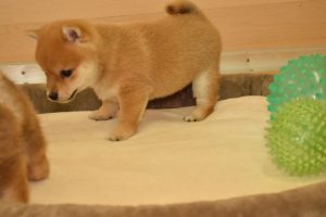子犬はすくすく成長中です(^^)。 ボールで遊ぶ姿がとても可愛いです♪