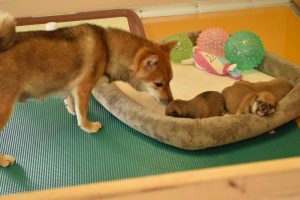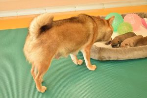 お母さん犬は愛情たっぷりに赤ちゃん犬を育ててくれています(^^)