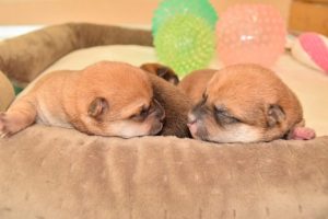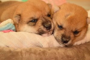 赤ちゃん犬は兄弟でくっついてすやすや眠っています(^^)