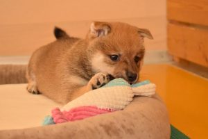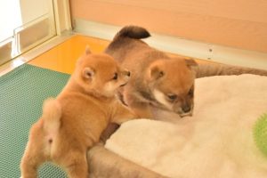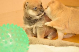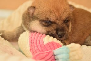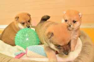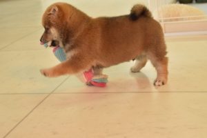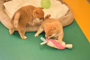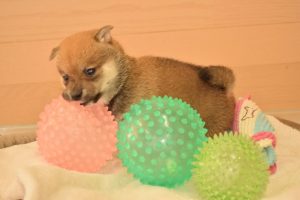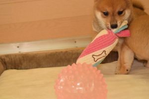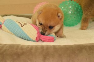 赤ちゃん犬はすくすく成長中です(^^)。おもちゃで遊ぶ姿が可愛いです♪