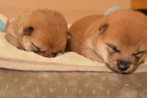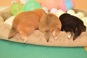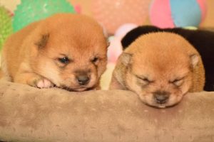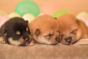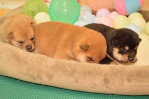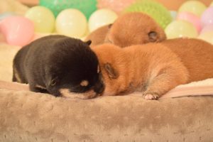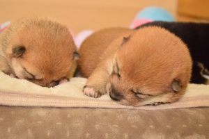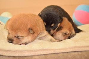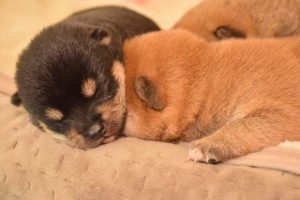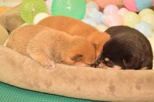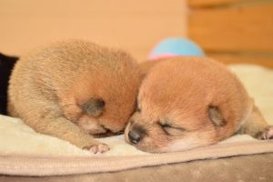 赤ちゃん犬はすやすや眠っています。兄妹で仲良くくっついて眠る姿がとても可愛いです♪
