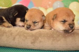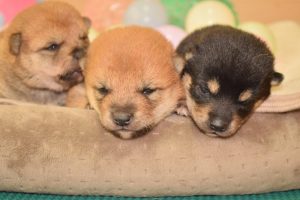 赤ちゃん犬はすくすく成長中です! 昨日と比べて、更にお目々が開いて来ました!