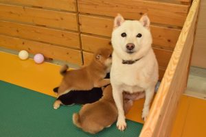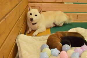 たっぷりミルクを飲んだら、また兄妹で遊びます(^^) お母さん犬もとても可愛いです♪