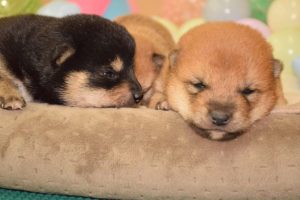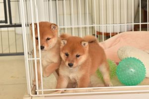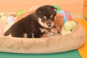 子犬はすくすく成長中です! 兄妹で仲良く遊ぶのが大好きです(^^)