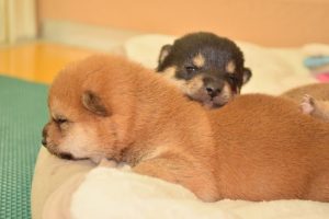 赤ちゃん犬はすくすく成長中です! あ!うっすらとお目々が開いて来ました!