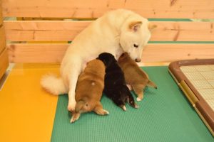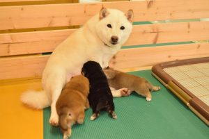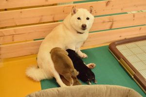 お母さん犬は愛情たっぷりに赤ちゃん犬を育ててくれています。