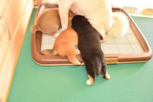 たっぷり遊んだら、お母さんのお乳に集まってミルクの時間です。お母さん犬もとても可愛いです♪
