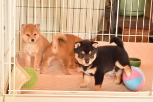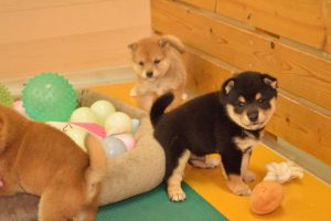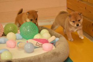 子犬はすくすく成長中です! 兄妹で仲良く遊びます(^^)