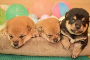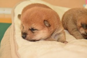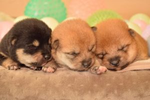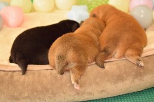 赤ちゃん犬はすやすや眠っています。兄妹で仲良くくっついて眠る姿がとても可愛いです♪