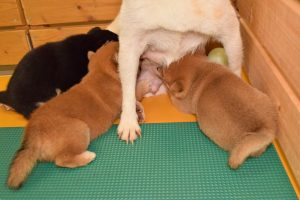 たっぷり遊んだら、お母さんのお乳に集まってミルクの時間です。お母さん犬もとても可愛いです♪