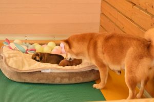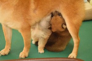 お母さん犬は、愛情たっぷりに赤ちゃん犬を育ててくれています。