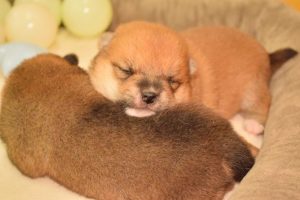 赤ちゃん犬はすくすく成長中です! お目々が少し開いて来ました!