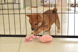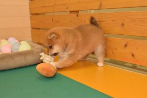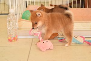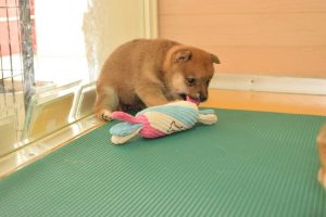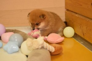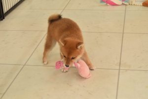 子犬はすくすく成長中です! おもちゃ遊びに夢中です(^^)