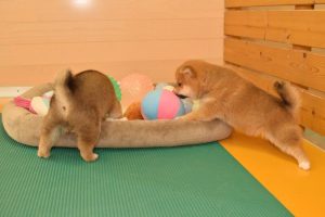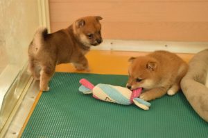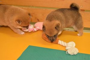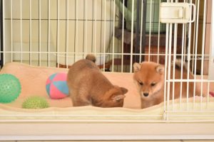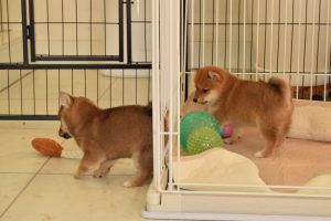 子犬はすくすく成長中です! 二人で仲良く遊びます(^^)