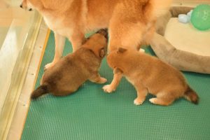 たっぷり遊んだら、お母さん犬のお乳に集まってミルクの時間です(^^)