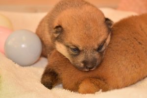 赤ちゃん犬はすくすく成長中です! お目々がパッチリ開いて来ました!