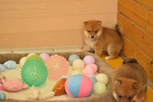 赤ちゃん犬はすくすく成長中です! 姉妹で仲良く遊びます♪
