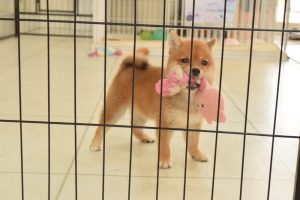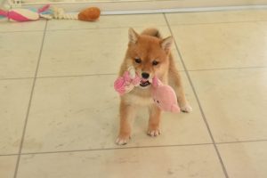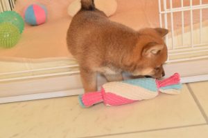 子犬はすくすく成長中です! おもちゃ遊びに夢中です(^^)