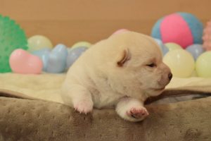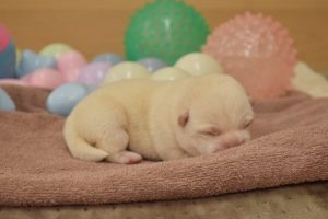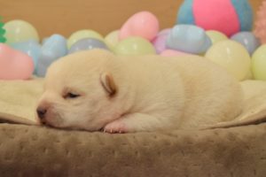 赤ちゃん犬はすくすく成長しています! あ!お目々が少し開いて来ました(^^)