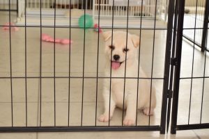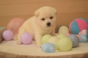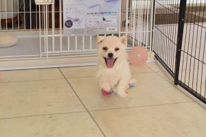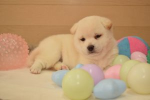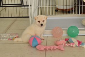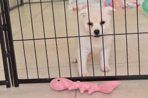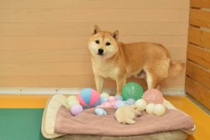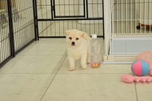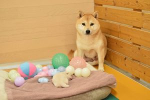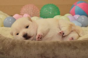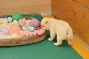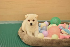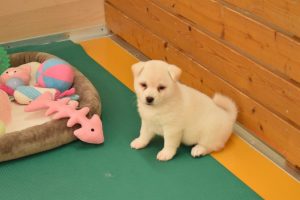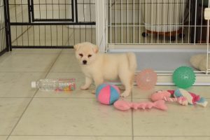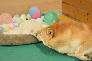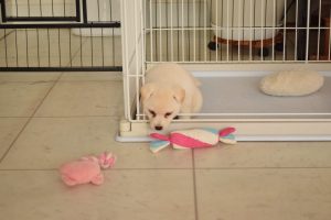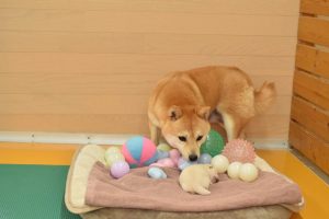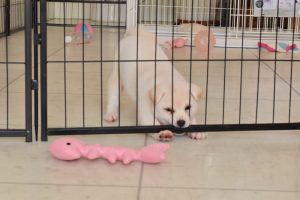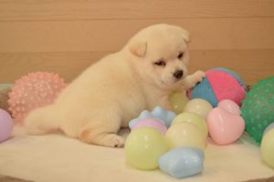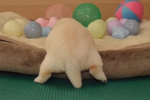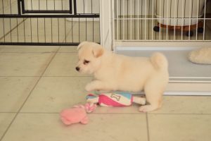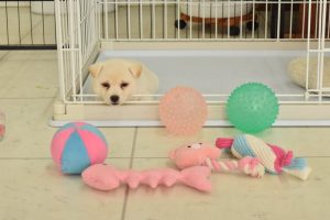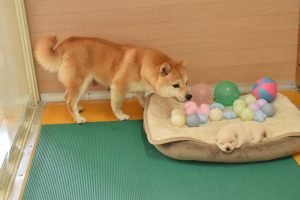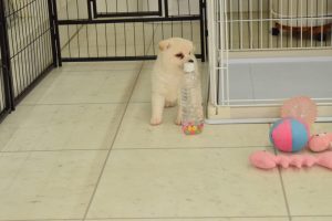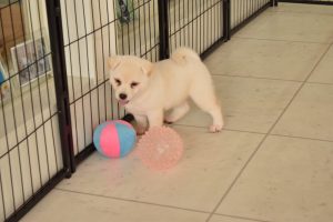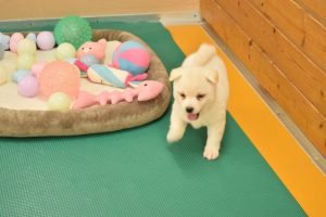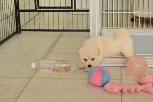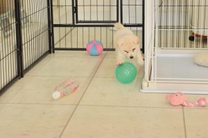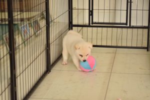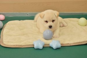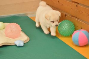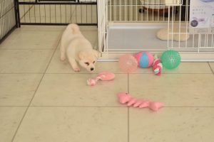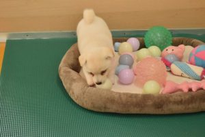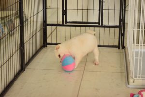 赤ちゃん犬はすくすく成長中です! おもちゃのボールで遊ぶようになりました(^^)