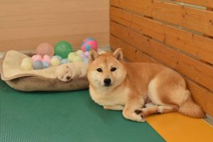お母さん犬は赤ちゃん犬の側でくつろいでいます(^^) おっとりしたお母さん犬です♪