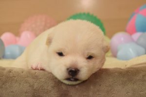 赤ちゃん犬はすくすく成長中です! お目々ぱっちりとても可愛いです(^^)