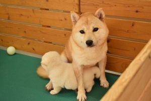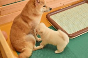 お母さん犬は愛情たっぷりに赤ちゃん犬を育ててくれています