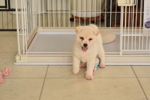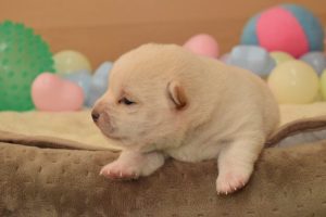 赤ちゃん犬はすくすく成長中です! お目々ぱっちりとても可愛いです(^^)