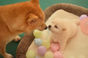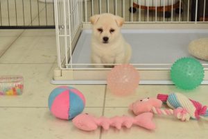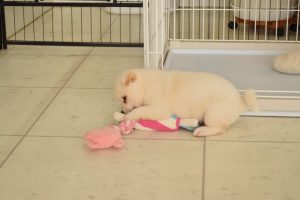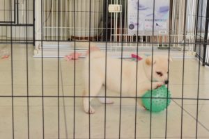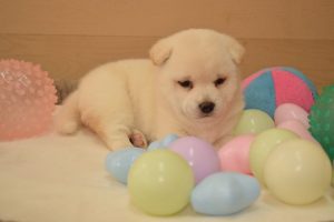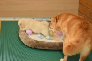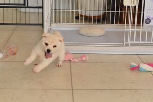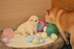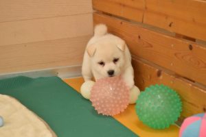 赤ちゃん犬はすくすく成長中です! おもちゃのボールで遊ぶようになりました(^^)