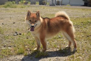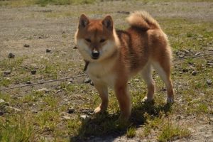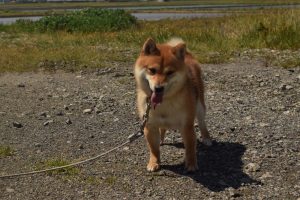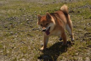 今日は良いお天気なので、赤豆柴の女の子と外に出て遊んでみました。