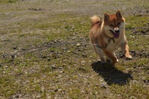 今日は良いお天気なので、赤豆柴の女の子と外に出て遊んでみました。
