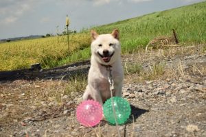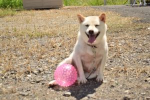 こんにちは。今日は白豆柴の女の子と外でボール遊びをしてみました(^^)