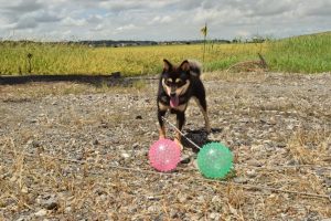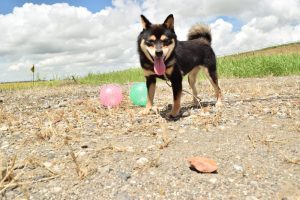 こんにちは。今日は黒豆柴の女の子と外で遊んでみました(^^)