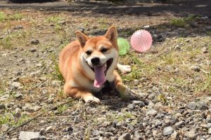 こんにちは。今日は赤豆柴の女の子を外で撮影してみました(^^)