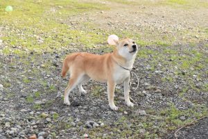 こんにちは!今日は赤豆柴の女の子と外で遊んでみました(^^)。