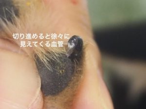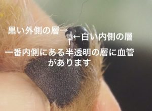 半透明な白い爪の場合には血管が透けて見えるので大体どこまで切って良いかが分かりやすいですが、黒爪の場合には外見から血管位置の予想がつきません。